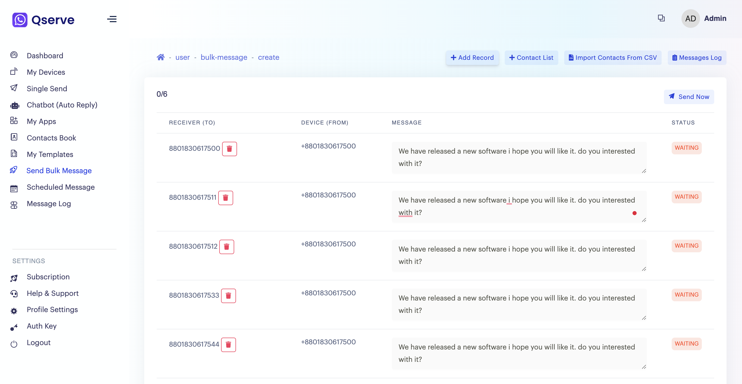 Envio em massa pelo WhatsApp é a disseminação de grandes quantidades de mensagens através do software WASender. É utilizado por empresas de mídia, bancos, outras empresas e marcas de consumo para diversos fins, incluindo entretenimento, marketing corporativo e marketing móvel.